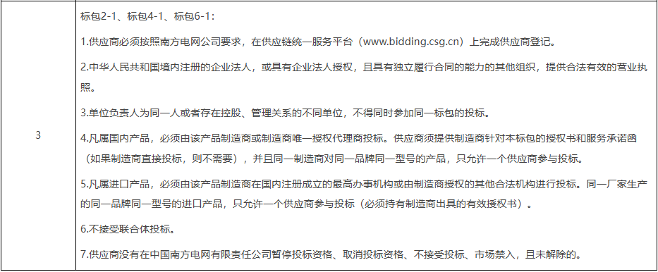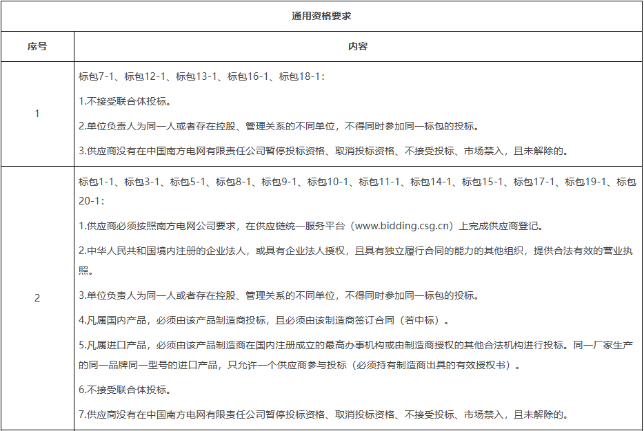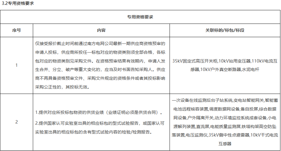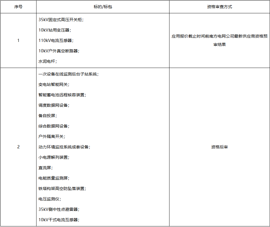 2.4資格審查方式:應用報價截止時間前南方電網公司最新供應商資格預審結果/資格后審,具體見下表: