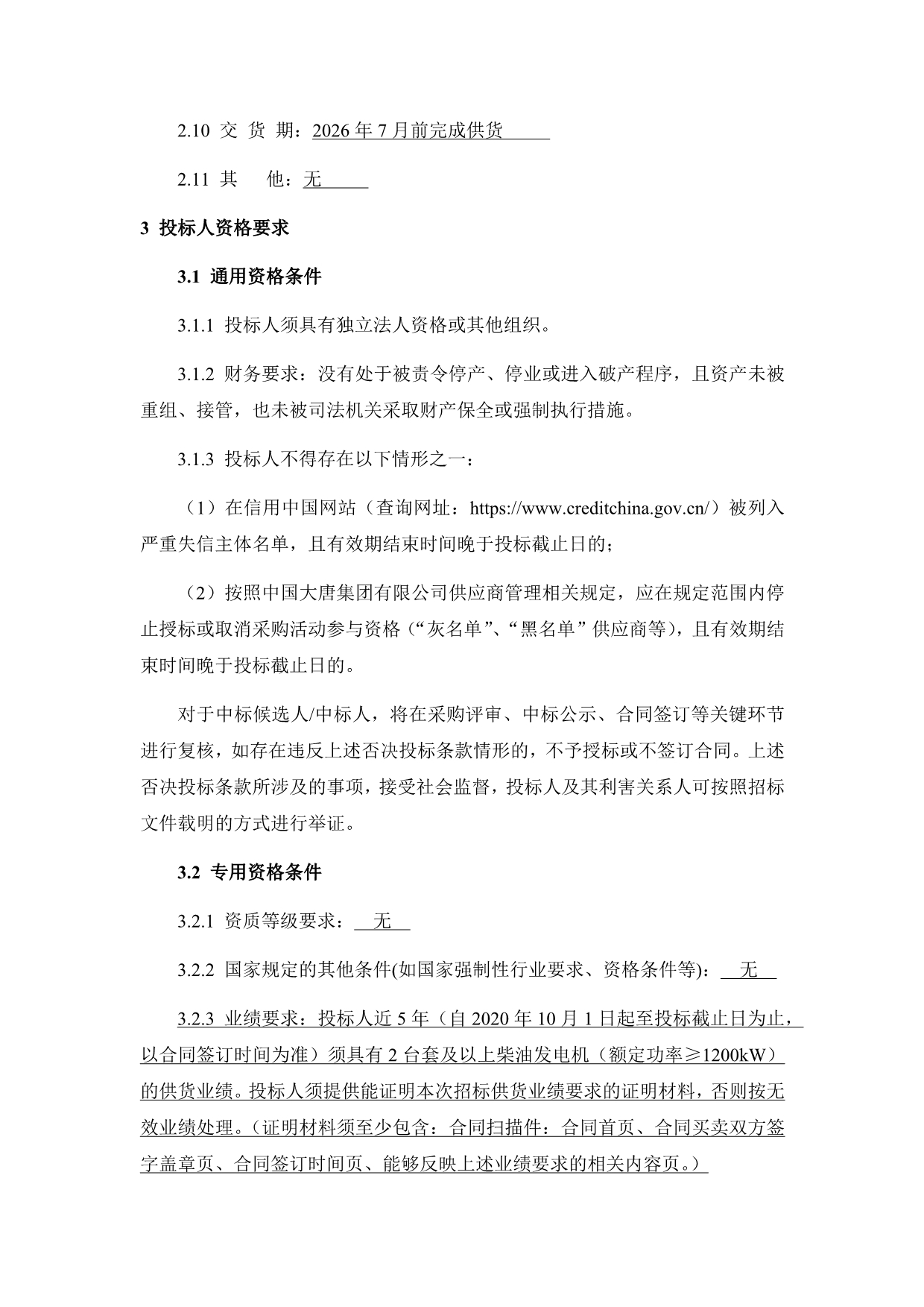 要求提供2臺套柴油發電機組及其輔助設備,提供下列范圍的設備:柴油發電機組及其輔助設備;柴油機及其燃油、潤滑油、冷卻、調速、起動、排氣、預燃、預供、增壓系統設備和管道、閥門等及其附件;發電機及其勵磁系統、勵磁調節、保護、控制、信號、測量、饋線裝置及其成套電氣屏柜。