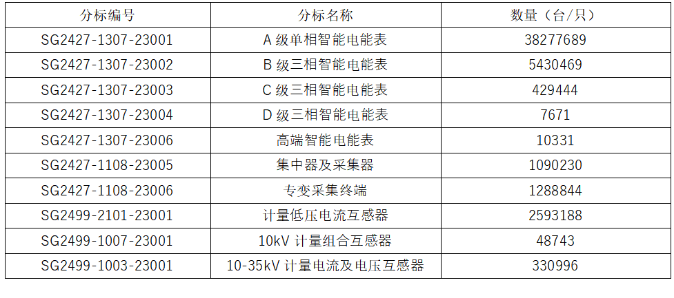 2024年2月23日,國家電網(wǎng)發(fā)布了2024年第十五批采購(營銷項目第一次計量設(shè)備招標(biāo)采購)招標(biāo)公告及2024年新增第八批采購(營銷項目第一次計量互感器招標(biāo)采購)招標(biāo)公告,兩份招標(biāo)合計采購設(shè)備分為10大類,如下: