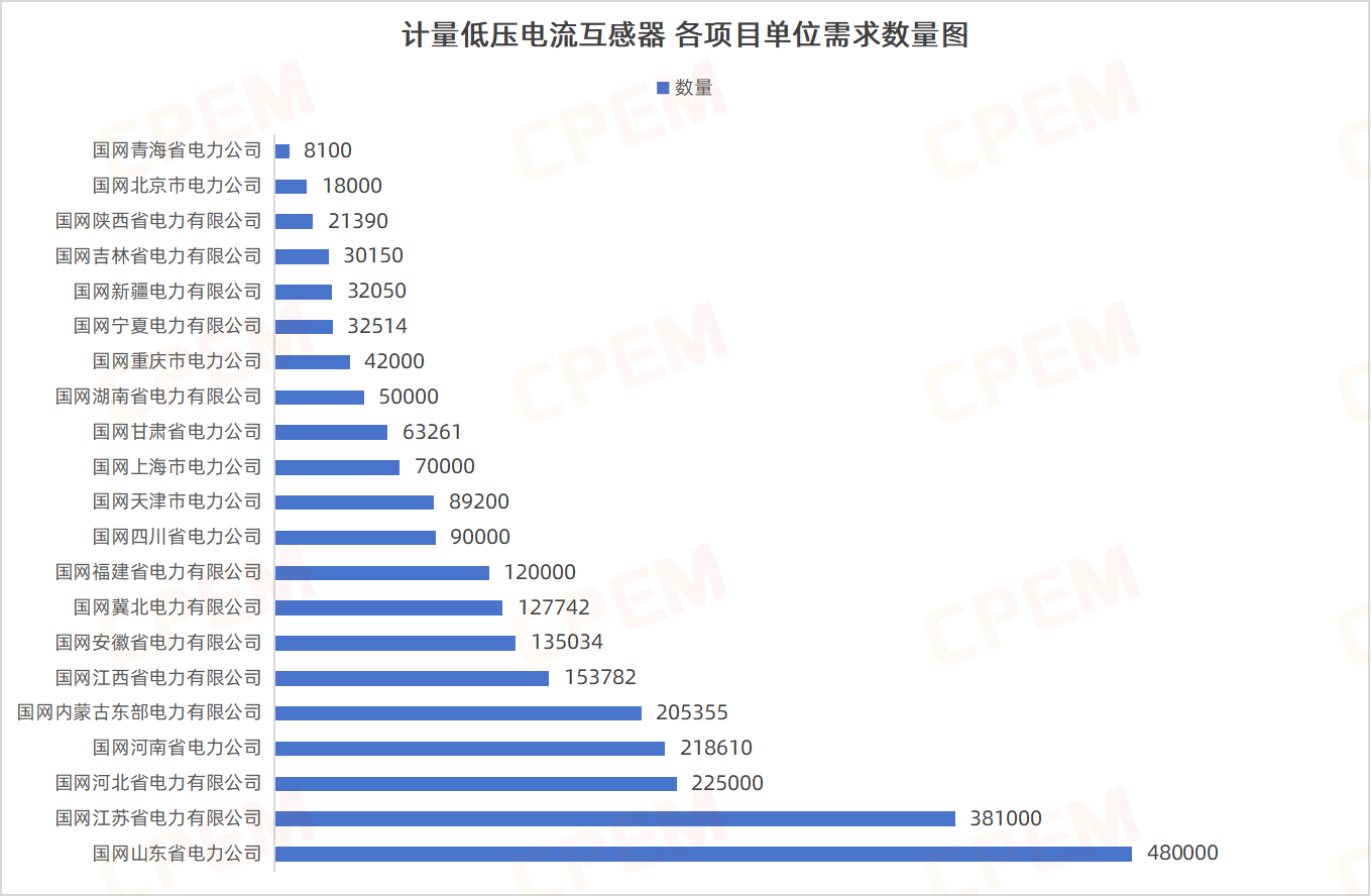 計量低壓電流互感器招標(biāo)項目單位共計21個,其國國網(wǎng)山東省電力公司、國網(wǎng)江蘇省電力有限公司、國網(wǎng)河北省電力有限公司三個項目單位需求數(shù)量分列前三,計量低壓電流互感器,LMZ2D,200-500/5,0.2S該款產(chǎn)品的需求量最大,達(dá)953889臺。