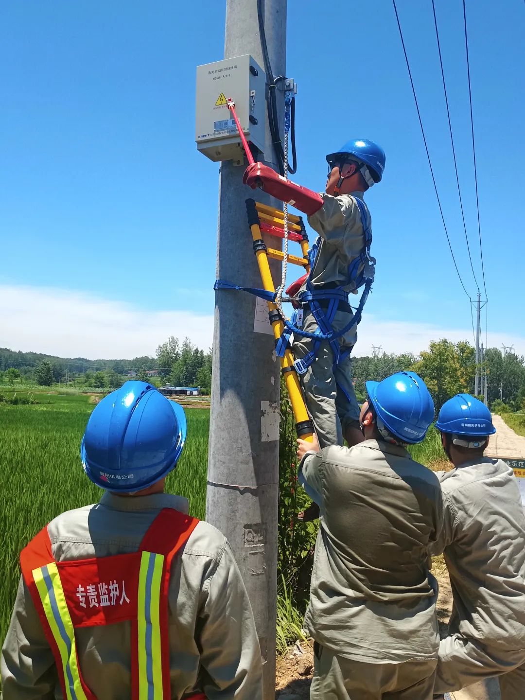 2025年7月10日凌晨4點,在衡山縣白果鎮石溪村,國網衡陽供電公司施工人員正對10千伏貫溪線進行著配網饋線自動化建設,讓線路具有一定自愈能力,進一步提升供電可靠性。
