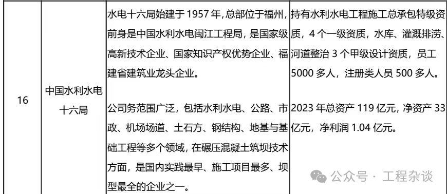 下面具體來看看水電1局到16局的綜合實(shí)力對(duì)比: